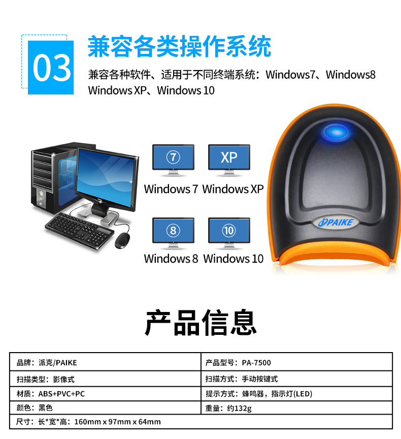 • 產(chǎn)品名稱:派克掃碼槍PA-7500